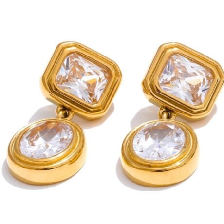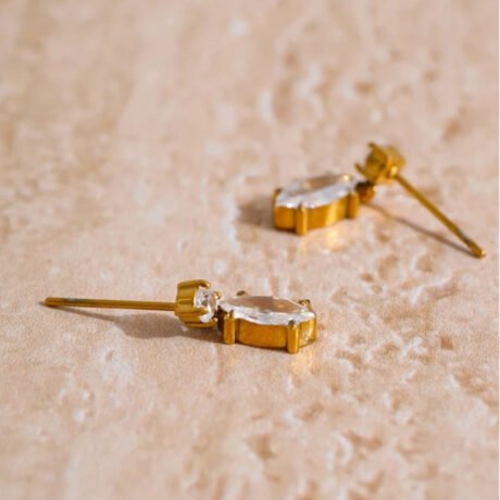 Bold gold earring with amber-like stone, perfect for a sophisticated look.