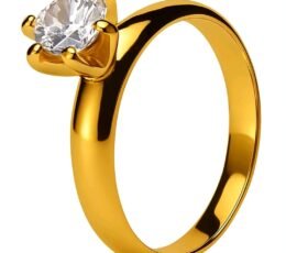Adjustable gold earring with oval gemstones in pink and tiger eye colors.