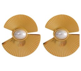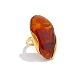 Bold gold earring with amber-like stone, perfect for a sophisticated look.