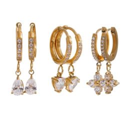 Gold earrings with beads, shells, tassels,and starfish charms.